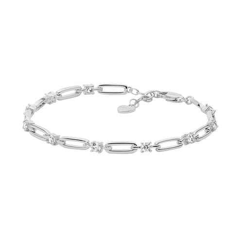 • Hyperbola Bangle – Silver Tone with White Crystals