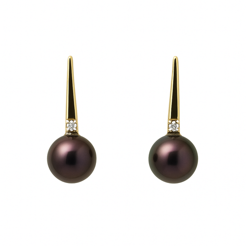 9CT Yellow Gold Black Pearl & Diamond Stud Earrings