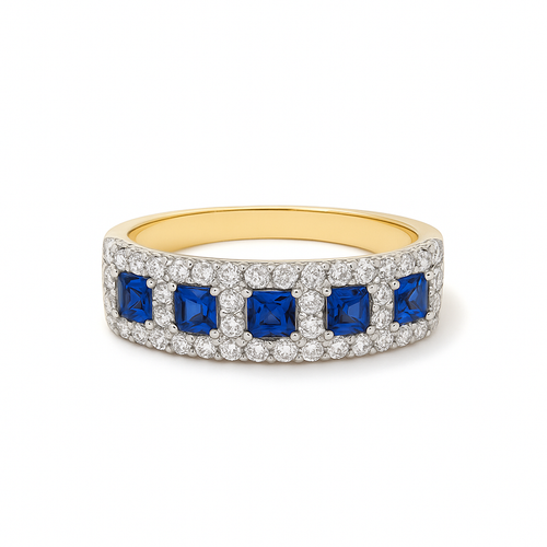 10ct Yellow Gold 0.55ct Blue Sapphire & 0.70ct Lab Grown Diamond Ring