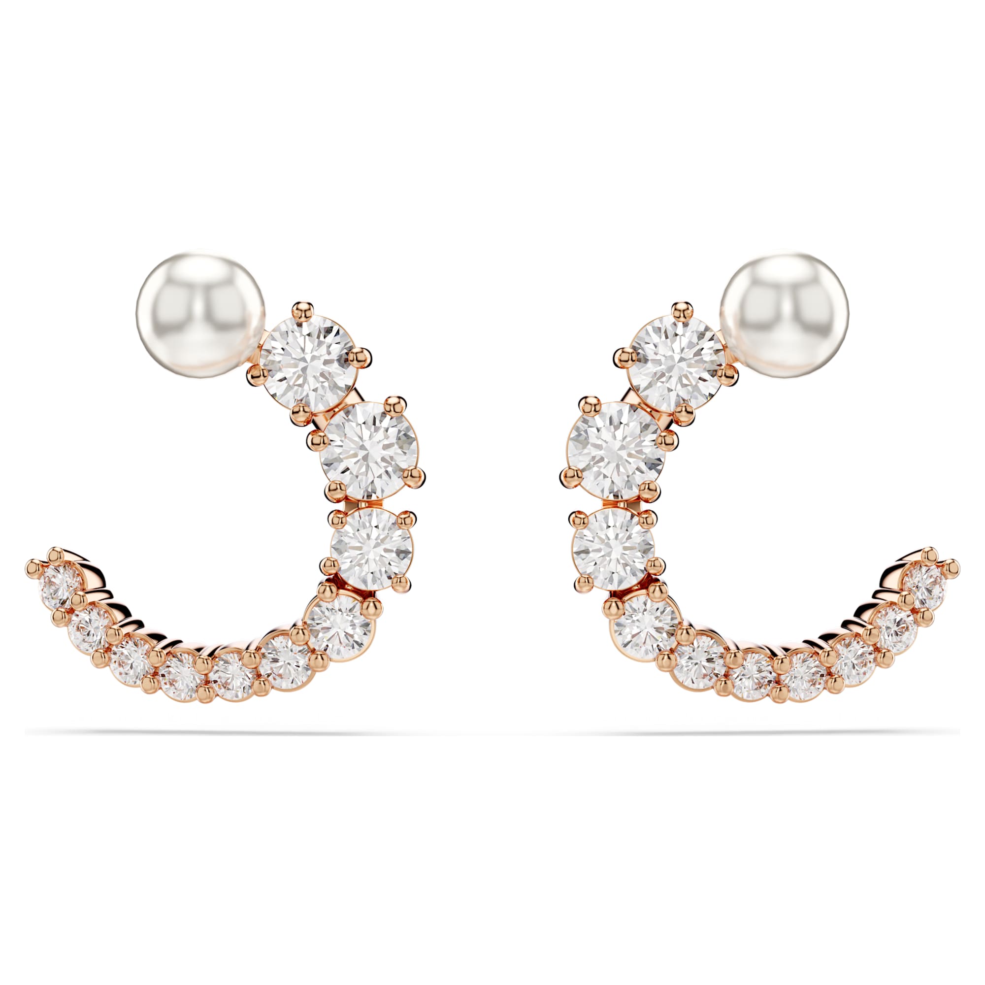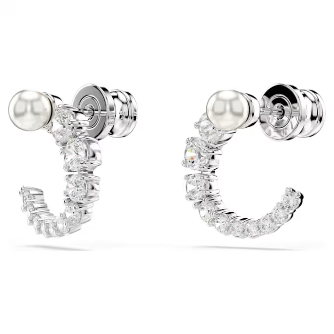 Every detail of these pierced earrings exudes beauty. Each stud features an open ring of clear Swarovski Zirconia, ranging in size from small to large, and bookended with a white Swarovski Crystal Pearl at the top. Pair with a matching Matrix pendant to own the spotlight.