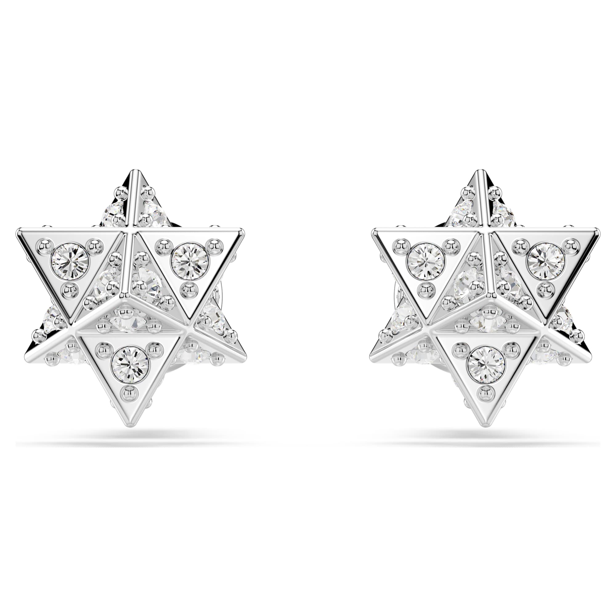Blending playful geometry with shimmering light, these Dextera studs were made for joyful styling. Each 3D star is rhodium plated and amplified with offset pavé and mixed sizes of crystals. Wear them together for symmetrical sophistication or mix and match with the sphere-shaped studs from the same multifaceted family