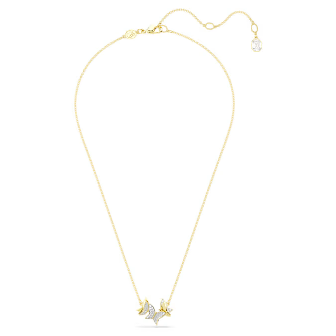 An elegant choice for every day, this delicate necklace will become a new wardrobe staple. It features shimmering pavé butterfly motifs suspended from a 18k gold plated chain. The perfect partner to white T-shirts, cashmere jumpers, denim or eveningwear – essentially, anything goes.