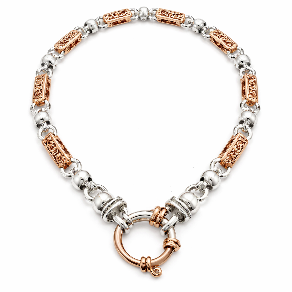 9ct Rose Gold & Sterling Silver Bracelet with Bolt Ring