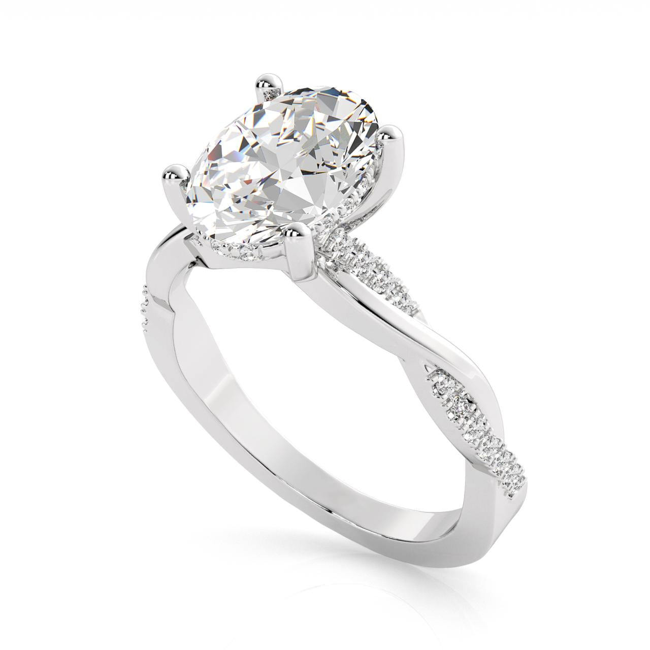 Crafted in 9ct white gold, this refined ring features a captivating 1.10ct lab-grown diamond with an oval silhouette, graded E/F VS for outstanding brilliance. Intricate diamond accents wind gracefully along the band in a twisted design, creating depth and luminosity.