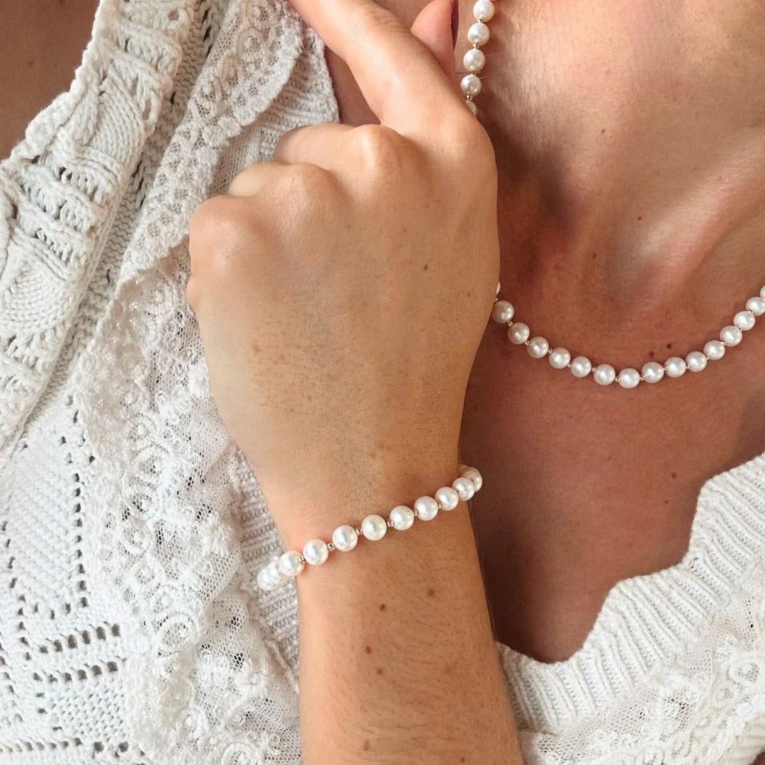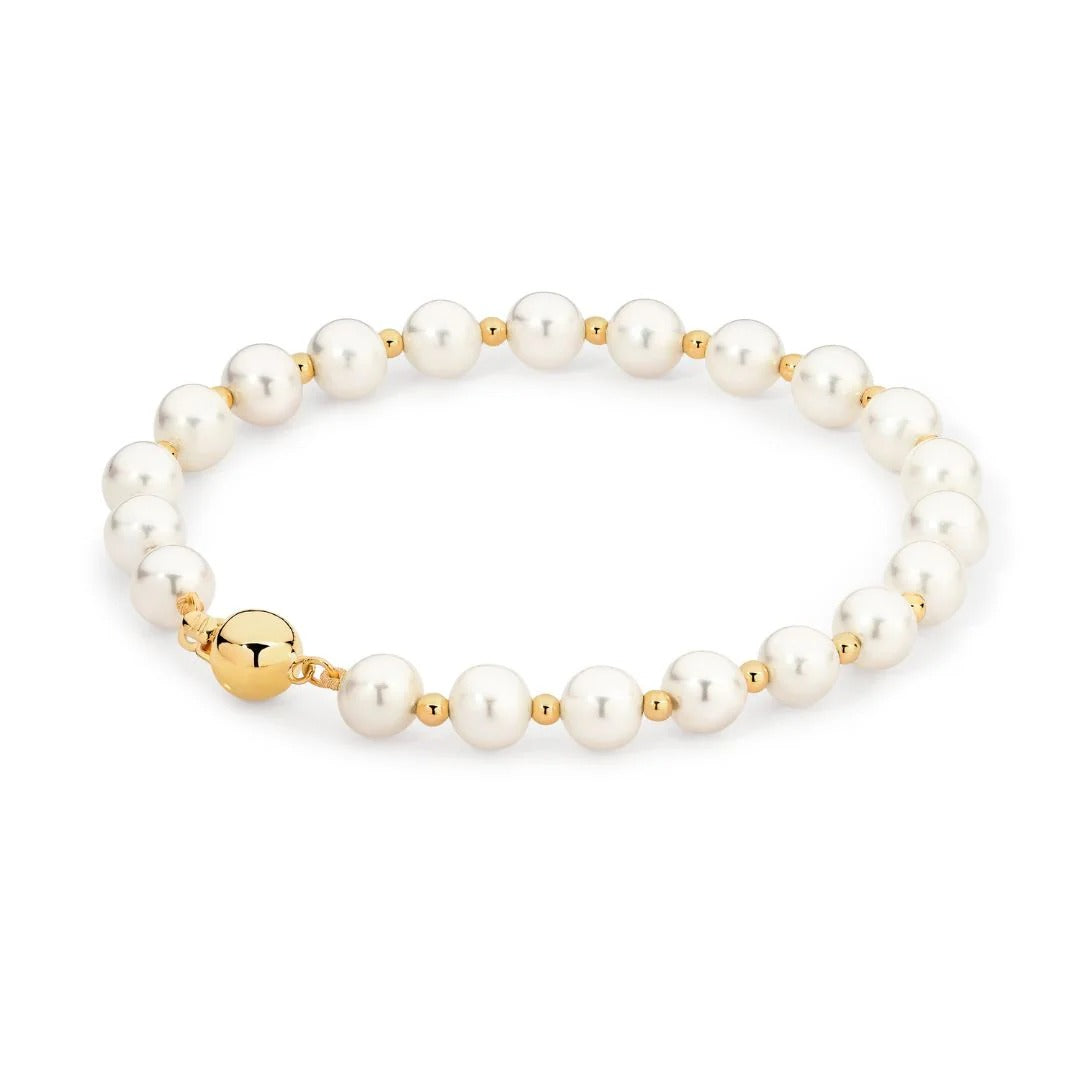 A highly requested design, the Anastasia Bracelet combine lustrous freshwater pearls with solid Italian gold beads for a modern take on a classic. Handcrafted with care.