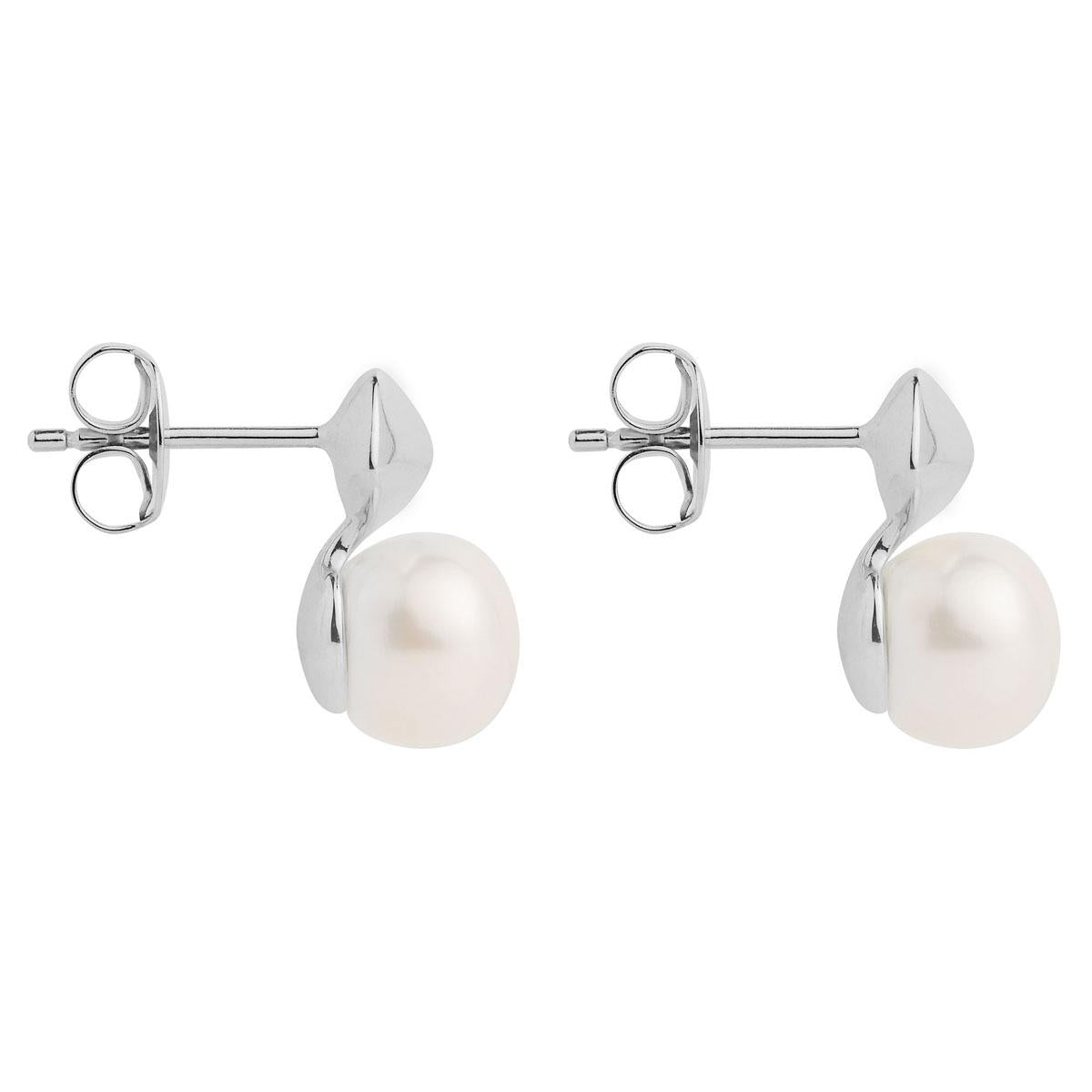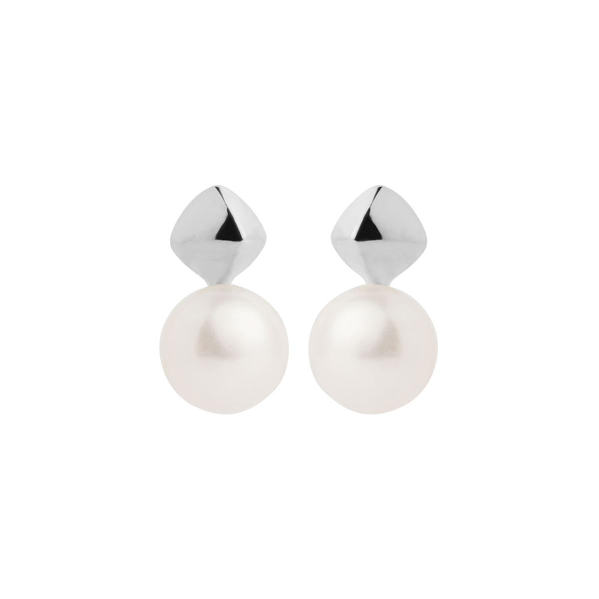 8x13mm fresh water button pearl beneath 5mm wide silver pyramid shape stud fitting.
