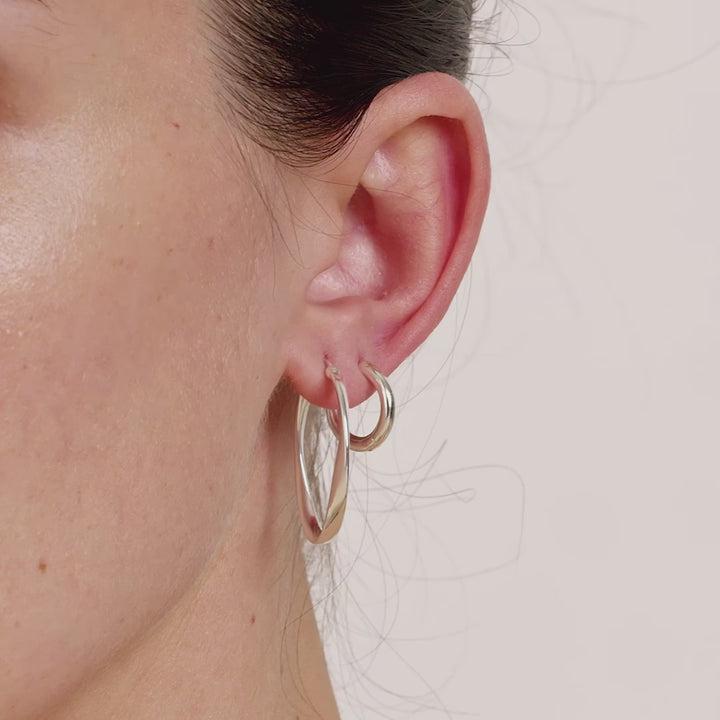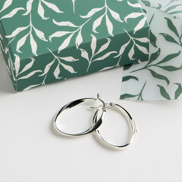 Embodying sleek and modern femininity, our Cinta earrings add round-the-clock luminous polish. Gleaming sterling silver has been artfully sculpted into ribbons, then curved to create charming oval hoops. Add armfuls of polished silver bangles to complete your radiant night-time look.