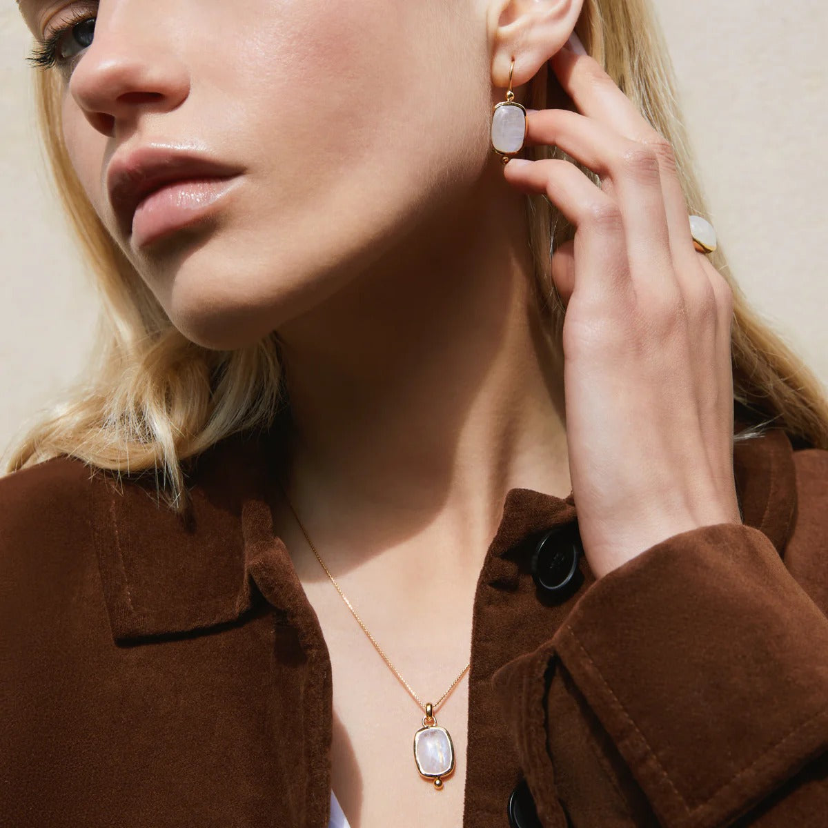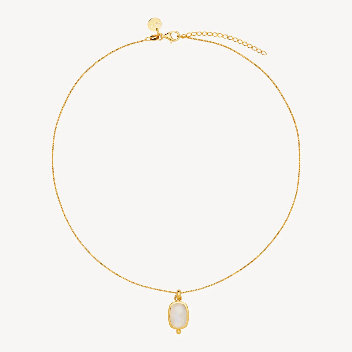 Inspired by Paris in bloom, the effortlessly glamorous Fleur Necklace channels the soft light and fluid beauty of springtime Impressionist watercolours. Her impeccably crafted pendant is defined by the most beautiful rectangular rainbow moonstone cabochon gemstone. The intentional open-back design of the yellow gold-plated setting invites the light in, allowing this stone of protection to emit a magical iridescent glow. Our silversmiths add a generous extension to the yellow gold plated chain for tailoredlayered or solo styling.