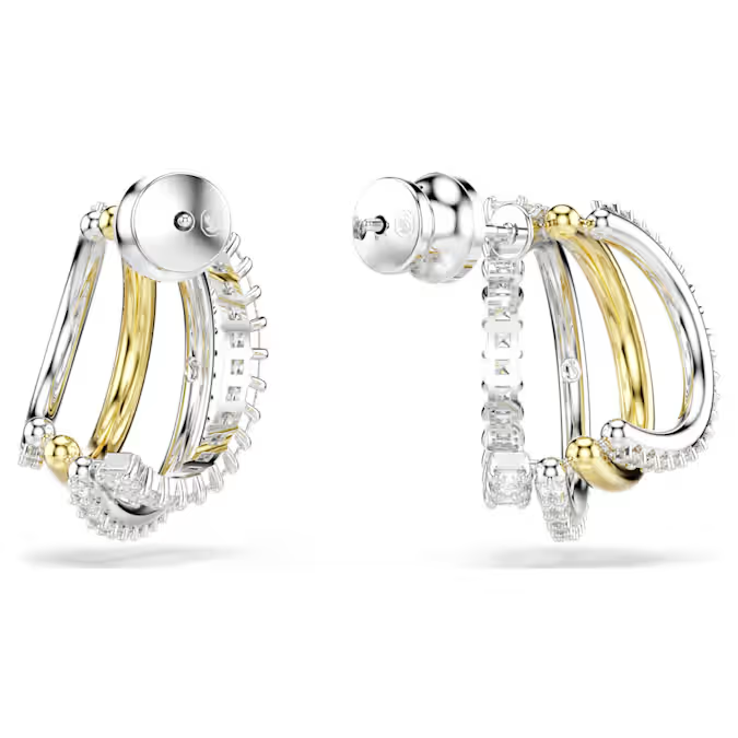 These intricately detailed Hyperbola earrings find beauty and harmony in contrast. On each side, the four mini hoops are presented in a variety of metal finishes, including gold-tone and rhodium plating, and feature round- and square-cut Swarovski Zirconia in a prong setting. Style with a matching bangle or necklace to dial up the drama.