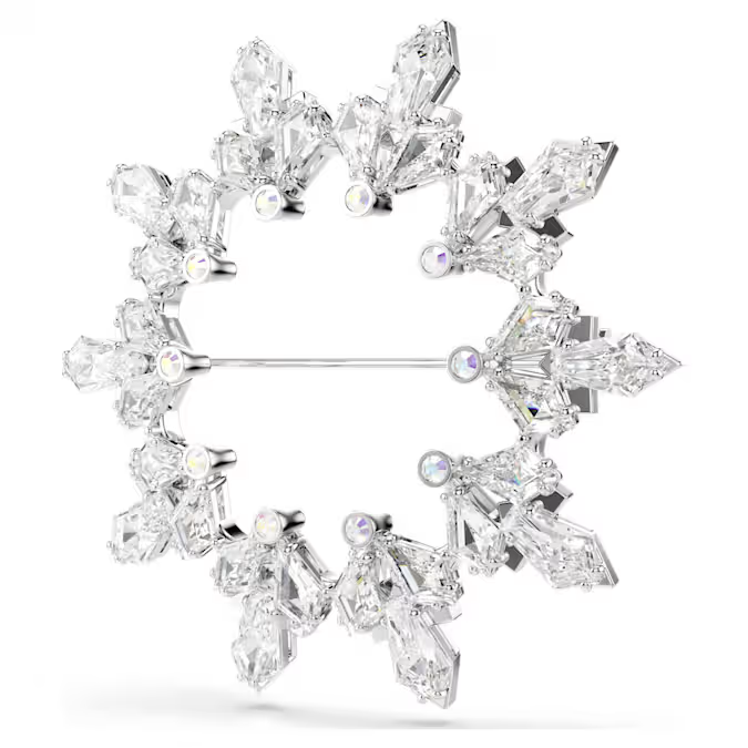 The unique beauty of nature is radiantly replicated in this spectacular snowflake brooch. The rhodium plated piece is a showstopping example of Swarovski’s mastery of cut, featuring an array of expertly faceted Swarovski Zirconia coming together to form a modern yet classic winter motif. Style this glistening piece with a monochrome outfit in a deep shade to ensure maximum impact.