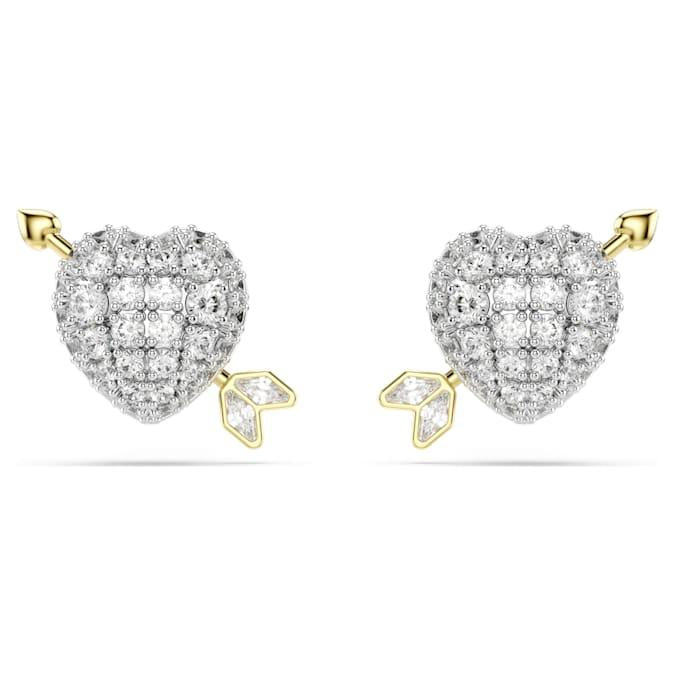 Celebrate true love with these heart-shaped Idyllia studs. Each piece features a rhodium plated heart with glittering Swarovski Zirconia, pierced by Cupid’s gold-tone plated arrow. A subtle yet expressive way to define your personal style.