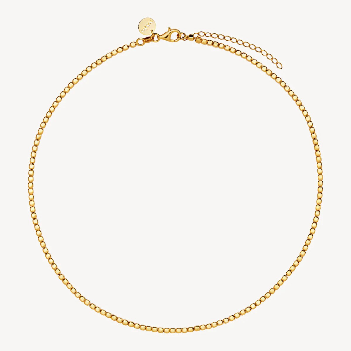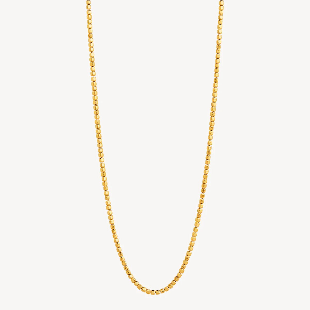 The structured yet fluid Quadrille is composed of polished square beads threaded in rhythmic succession. Her sense of order is inspired by the geometry of Parisian gardens, where symmetry and intention shape even the wildest forms of nature. This quietly elegant creation is crafted by our Italian chain artisans with a generous extension for length play. Whether adornedsolo or layered, the Quadrille is your reminder that personal style is curated, beautiful and expressive.