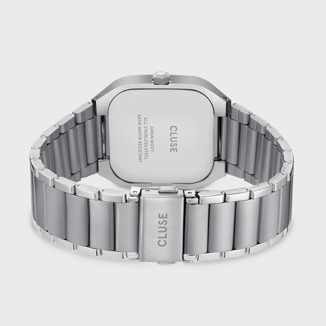 The square Quadrus watch for men features a 35 mm silver coloured case, green dial and silver coloured stainless steel 20 mm strap.