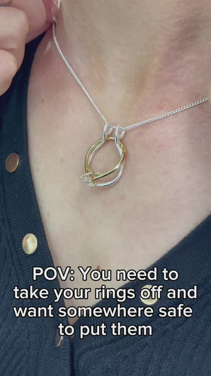 Keep your treasured rings close to your heart — always. This clever, minimalist sterling silver ring holder pendant is both practical and elegant, designed for those moments when you need to slip off your rings but don’t want them far away.