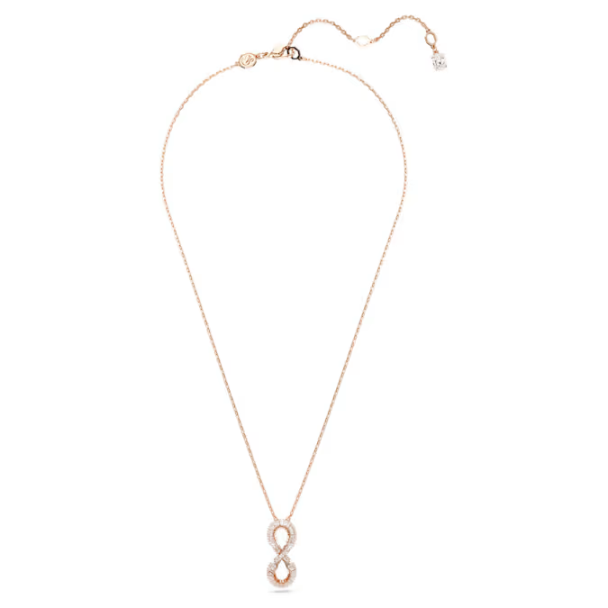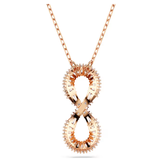 Embrace timeless style with this dazzling Hyperbola pendant in the shape of an infinity symbol. The rose gold-tone plated jewellery is worn on a delicate chain, with its vertical motif embellished with clear Swarovski Zirconia. A single Swarovski Zirconia is also placed in the elongation for an extra touch of luxury. A piece that is ideal for everyday elegance.