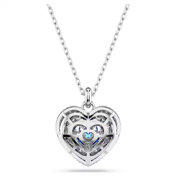 Two hearts become one in this romantic Swarovski pendant. The rhodium-plated motif has been created with a cage design for maximum volume. To enhance the domed effect, it is adorned with round clear Swarovski Zirconia, set in place using the dazzling chatonnage technique, while at the centre, a heart-shaped dancing stone in blue catches the light from every angle. A perfect way to say ‘I love you’ to someone special.